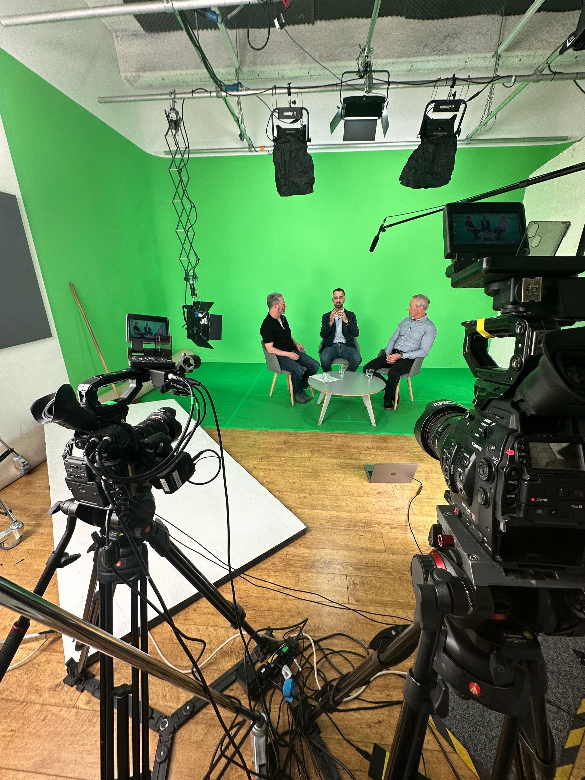 Our most versatile space! A complete room-within-a-room studio which boasts a wrap around Green Screen and a Stocked lighting rig mastered perfectly for keying - All of these lights are adjustable for different workflows and controllable from the gallery control room. A letterbox between the studio and control room makes it possible to control all equipment from the gallery space.