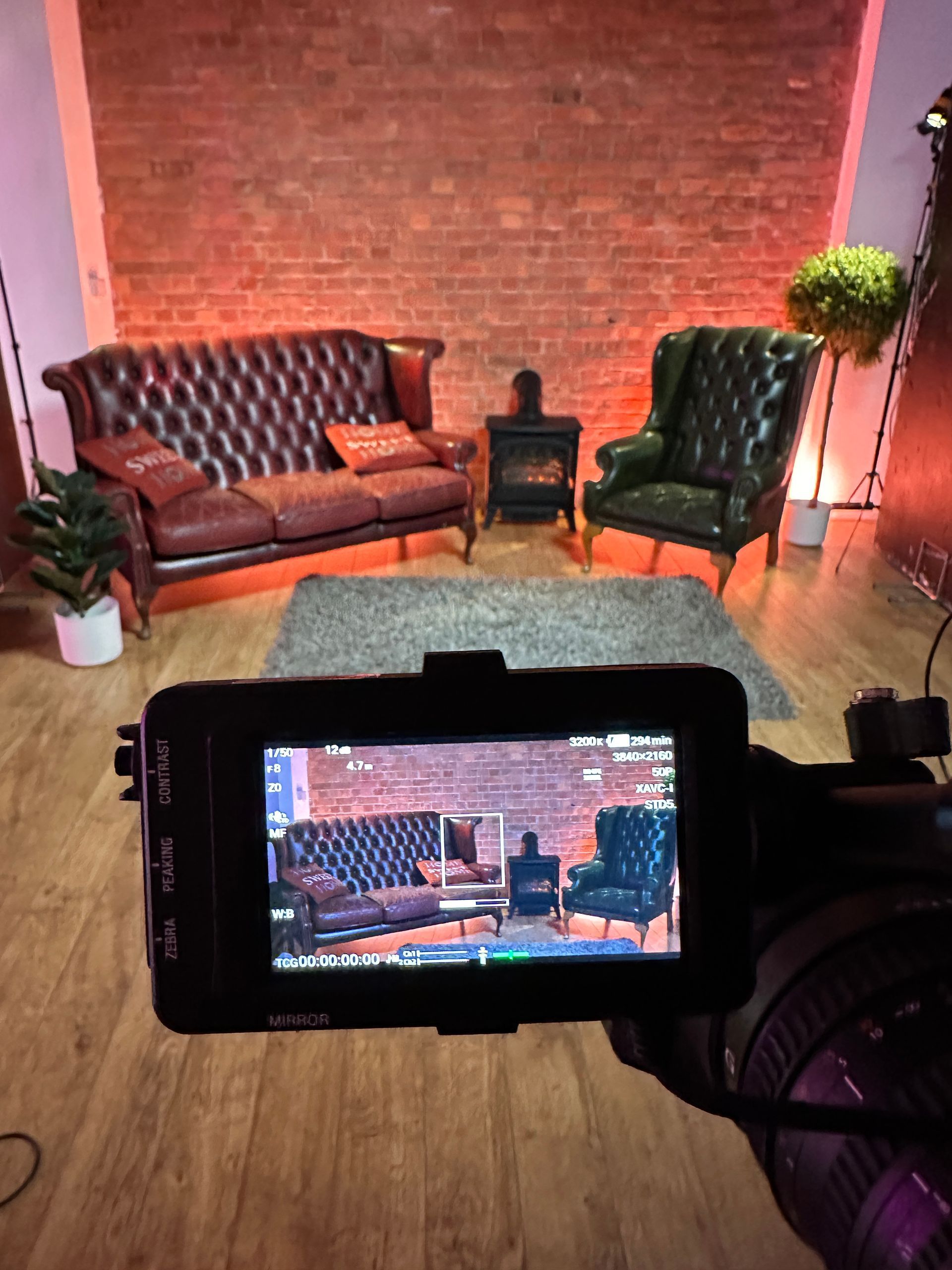 Featuring a generous white cove, an exposed brick wall for textured shots, and the option of natural daylight or full blackout, it offers creative flexibility for any style of shoot. A dedicated makeup room ensures your talent is prepped and comfortable throughout the session.